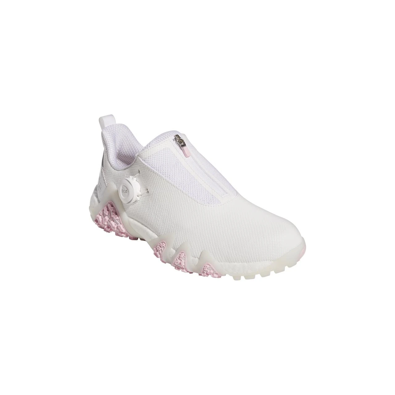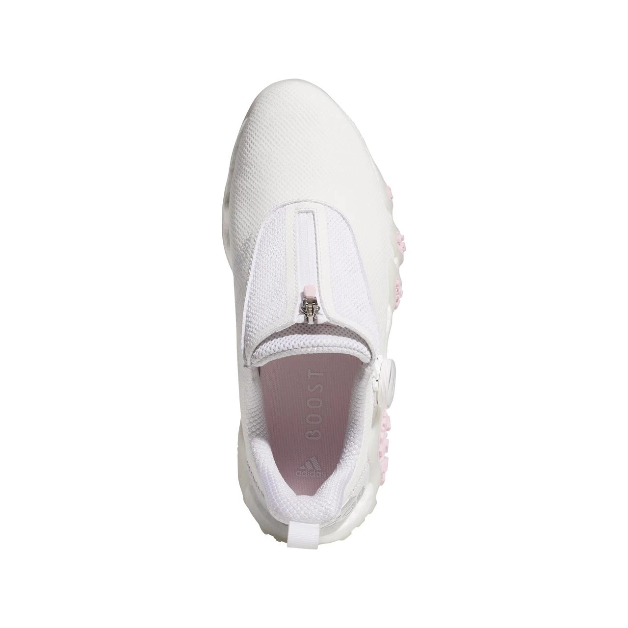 These women’s adidas golf shoes are designed for performance on the links. The full-length BOOST midsole delivers energy return with every step. The spikeless outsole features Twist Grip traction with sidewall wraps for enhanced support. The mesh upper has an added film to provide waterproof protection and keep the shoe clean. The BOA® Fit System lets you dial in a precise fit, and the shroud construction with a zip closure gives it a clean look. Made with a series of recycled materials, and at least 50% recycled content, this product represents just one of our solutions to help end plastic waste.