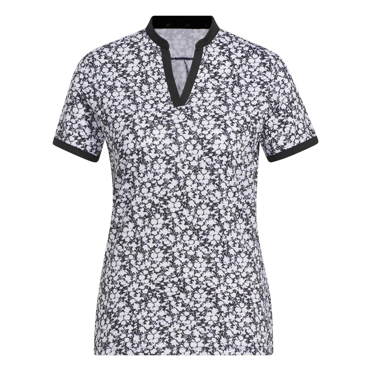 Made for the competitive golfer. This adidas golf polo shirt has a soft and stretchy feel to keep you comfortable through every swing. It has an open V-neck collar and an eye-catching floral allover print to round out the look.