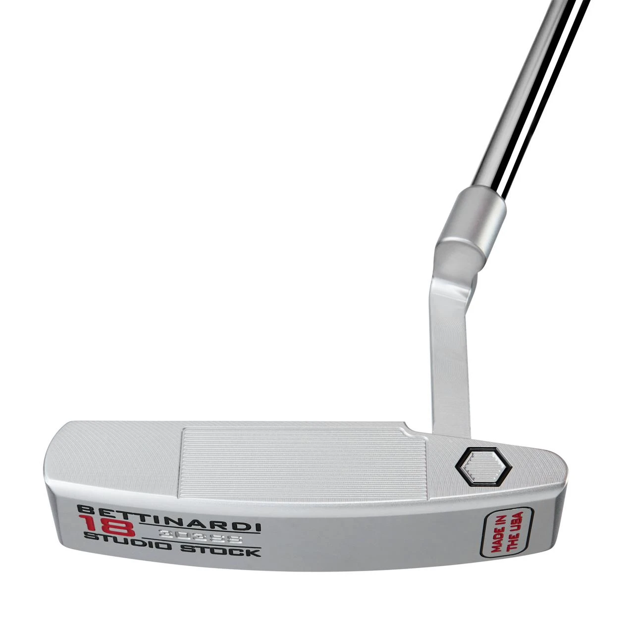 Bringing Tour-proven head shapes from the game’s best golfers, Robert Bettinardi’s 2021-22 Studio Stock Series includes four expertly crafted models to give champion-inspiring confidence to any player. Precision milled from a single block of 303 Stainless Steel, each sleek model features the all-new, Tour-inspired Roll Control Face Milling, a scientifically engineered groove profile designed to get the ball into a true roll faster, while still maintaining exceptional feel and audible feedback in every putt. The Studio Stock series is completed with our smooth Diamond Blast finish to provide a clean appearance from address, and is complemented by a crisp red and black paint scheme. Each Studio Stock putter is built with a Tour-grade shaft, and is paired with a matching premium headcover and Bettinardi Lamkin SINK Fit grip.