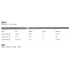The Project X IO is individually optimized for each iron in the set. The Mitsubishi MMT is a player’s graphite shaft with metal mesh in the tip for stability. Golf Pride’s Z Grip features a firm feel and exceptional traction.