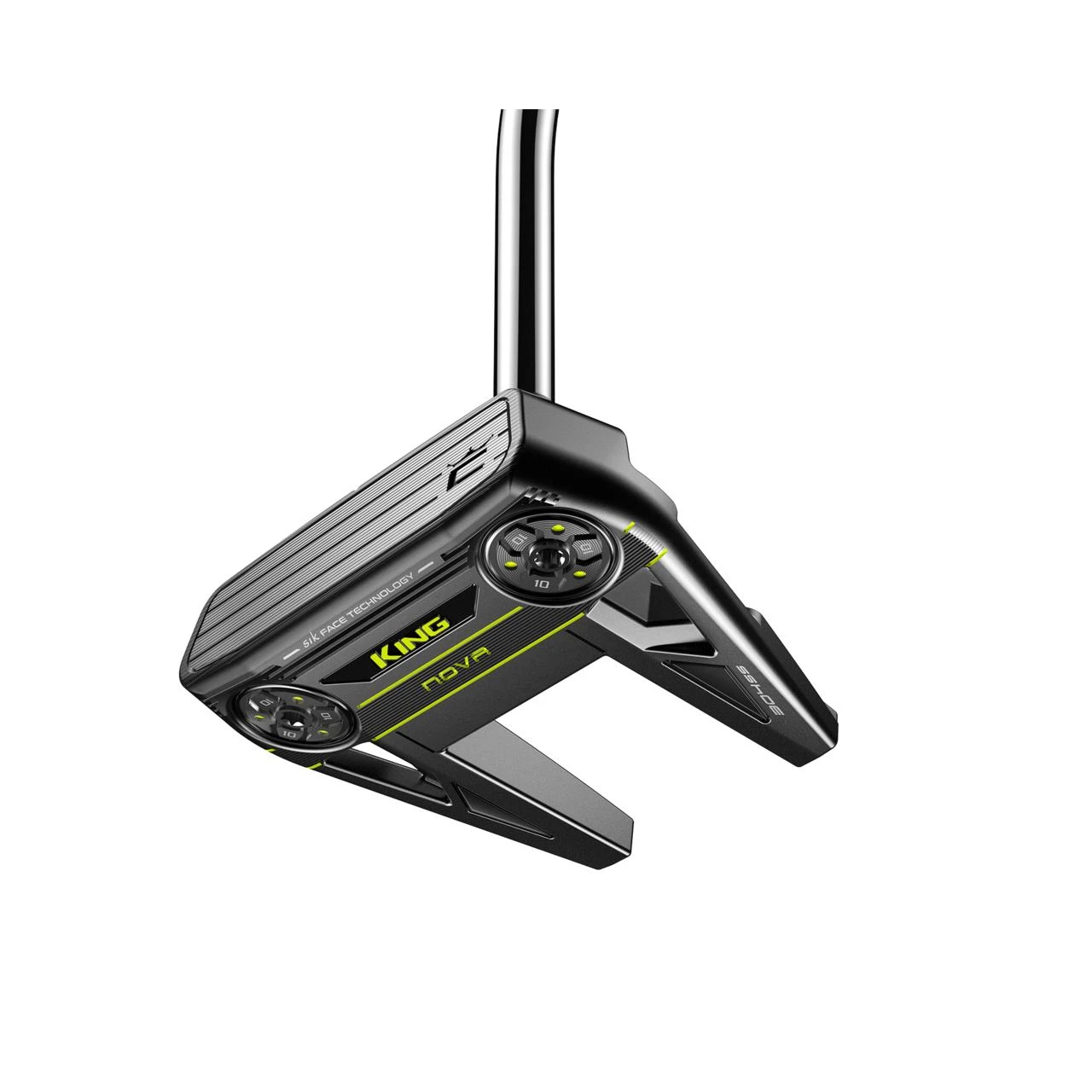 The KING Vintage Nova putter features a fang shape with a single bend hosel that is suitable for players with a straight back and straight through putting stroke seeking enhanced stability.