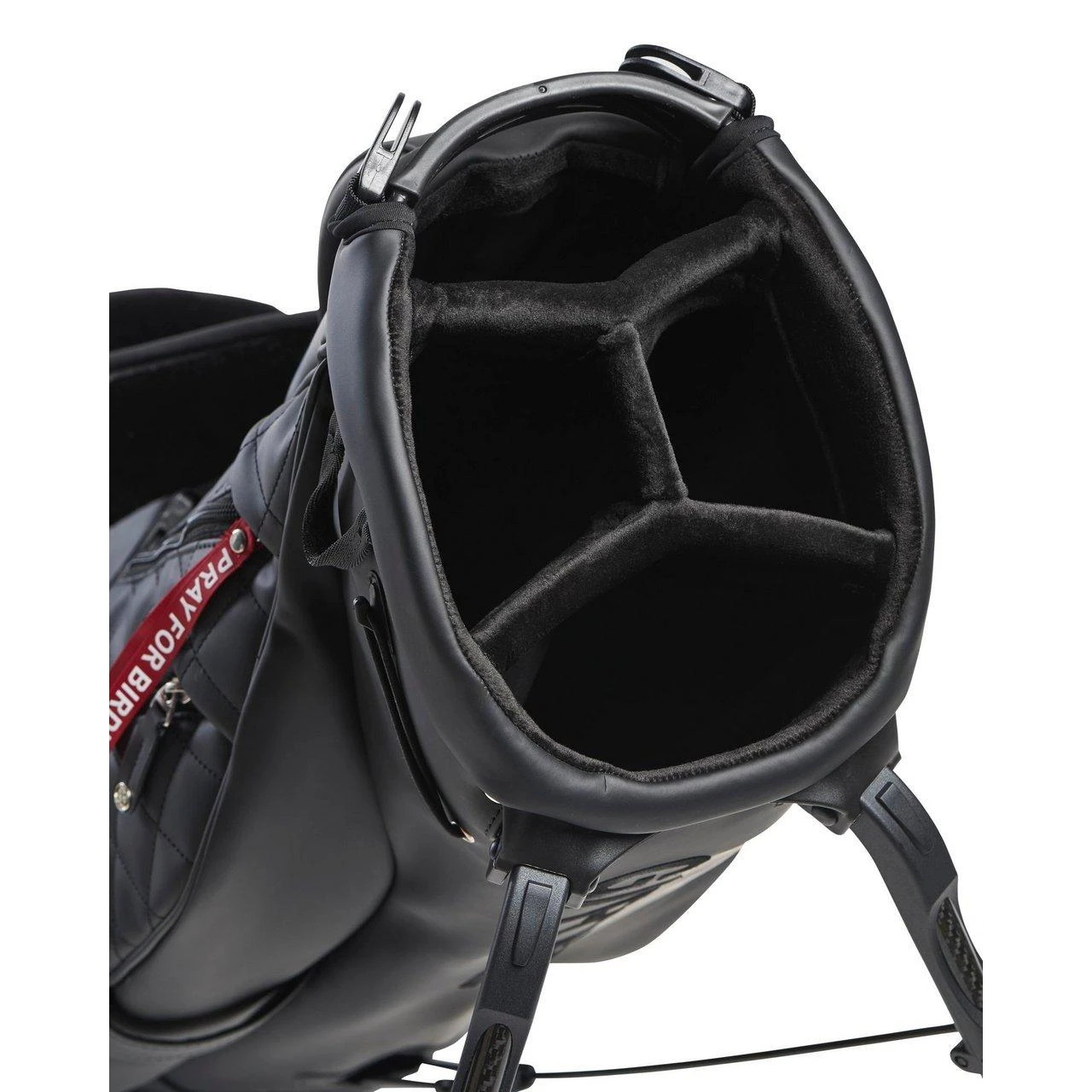 Our best-selling carry bag features a 4-way top designed with a rivet-less mesh construction for maximum club protection, a rotator stand system for maximum stability, a self-adjusting convertible strap for automatic equal distribution, and a compression molded neoprene back panel for comfort. The Daytona Plus boasts sophisticated grosgrain detailing and quilted panels, a self-colored rain hood, and an umbrella holder, as well as several pockets including a large garment compartment, water resistant pocket for personal items, cooler-lined water bottle sleeve, magnetic velour-lined rangefinder pocket, and pen pocket.