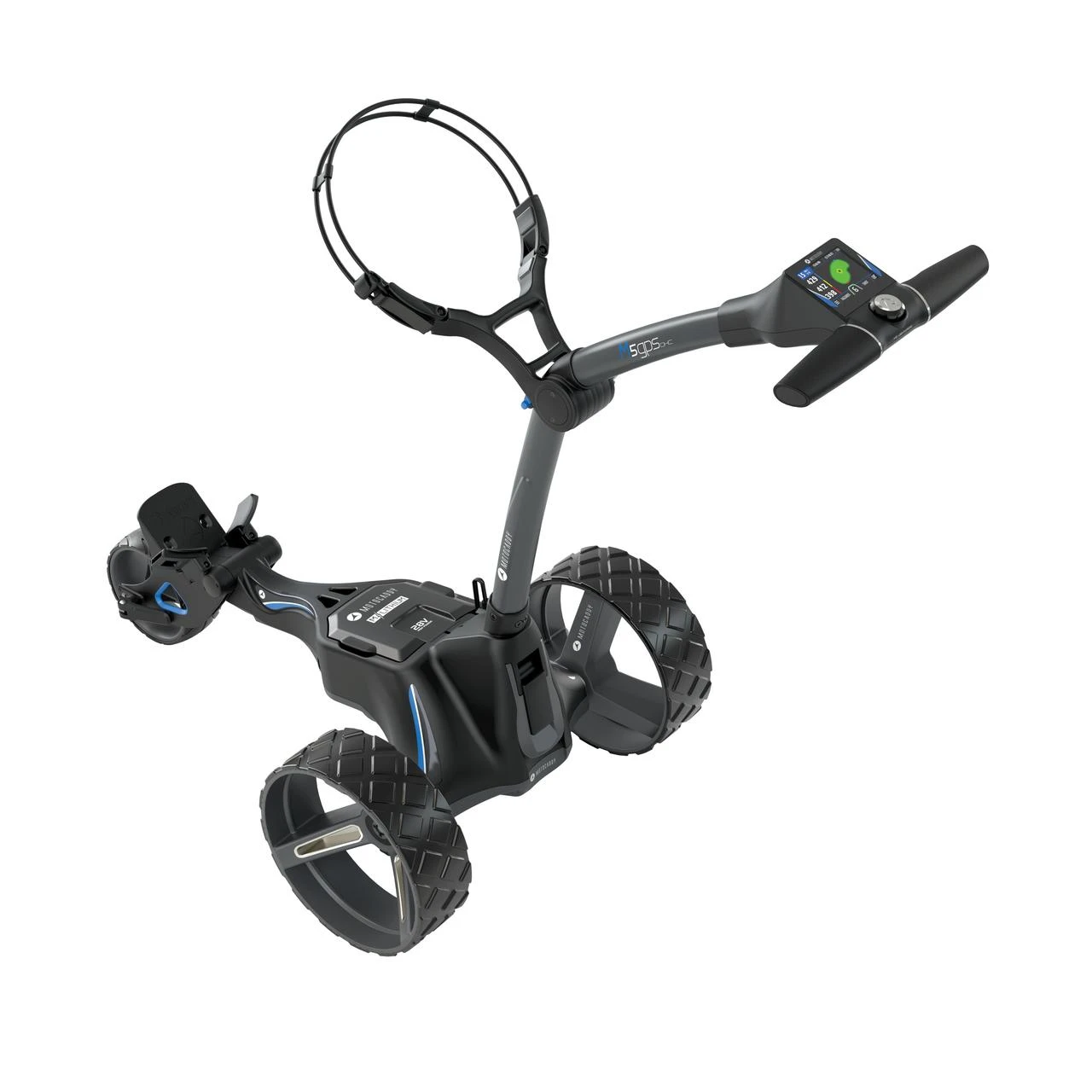 The M5 GPS DHC adds Downhill Control, an electronic parking brake and All terrain DHC wheels to the wide‑ranging features found on the compact‑folding M5 GPS ‘Smart Cart’. Compact and easy-to-fold, the M5 GPS DHC is the world’s first trolley to offer fully‑integrated GPS built into a super-responsive 3.5” touchscreen display. Easily viewable no matter the weather, the screen can be easily controlled in all conditions – even while wearing a glove. Includes free universal accessory station.