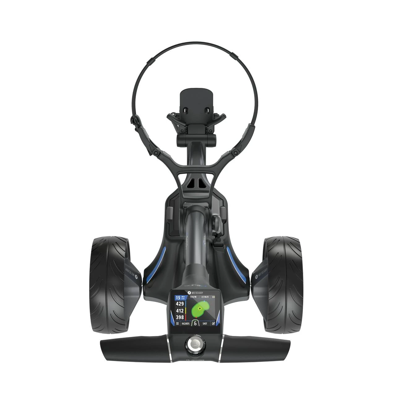 The world’s first trolley to offer fully‑integrated GPS built into a super-responsive 3.5” touchscreen display. Boasting 40,000 pre‑loaded courses with pin-point accuracy, it can also connect to the Motocaddy GPS app for smartphone alerts and offers built-in WiFi for instant Over‑the‑Air course and system updates. Compact and easy-to-fold, the M5 GPS is the world’s first trolley to offer fully‑integrated GPS built into a super-responsive 3.5” touchscreen display. Easily viewable no matter the weather, the screen can be easily controlled in all conditions – even while wearing a glove. Includes free universal accessory station.