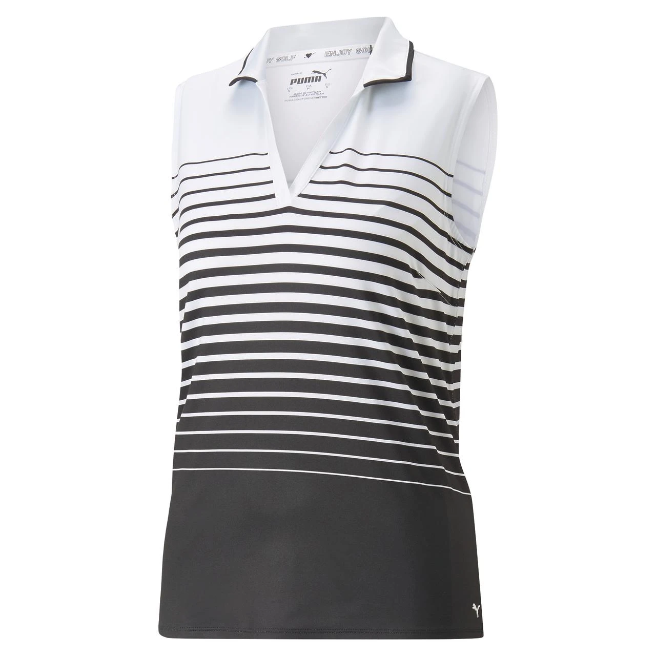 The Sleevless Stripe Polo has a retro look with horizontal stripes growing in width as they move down the silhouette. Featuring MATTR fabric technology, this top is designed to fight back against all environments. Whether rain or shine, extreme conditions are no match against this moisture-wicking fabric.