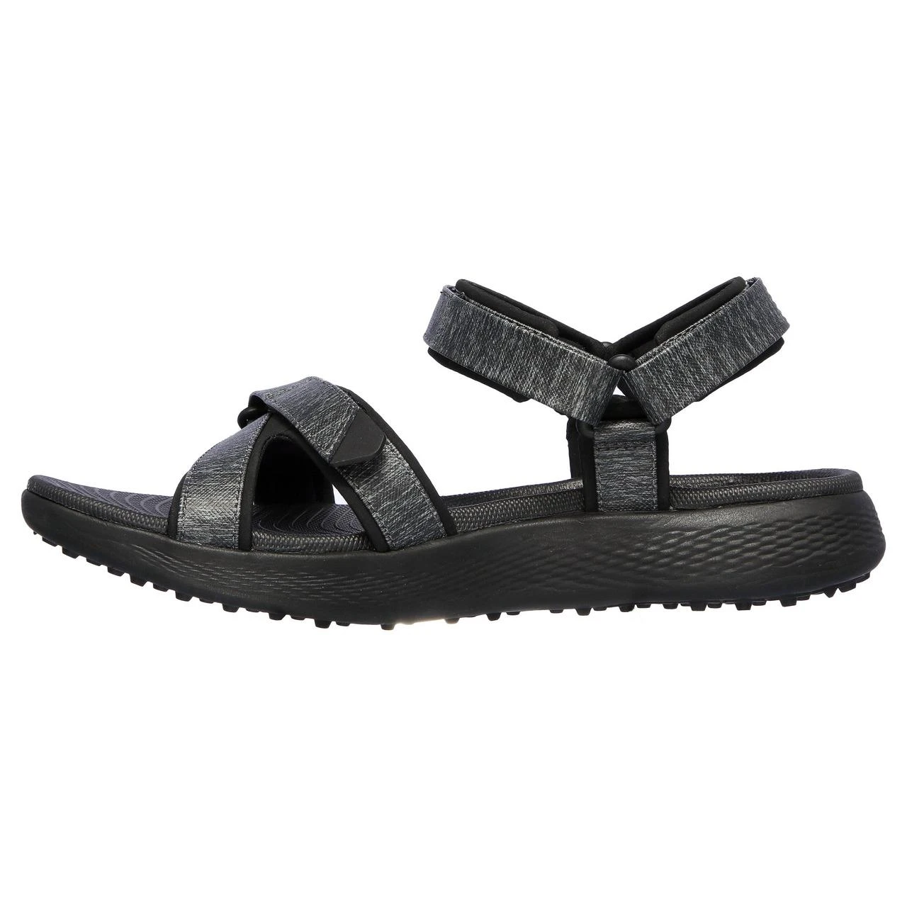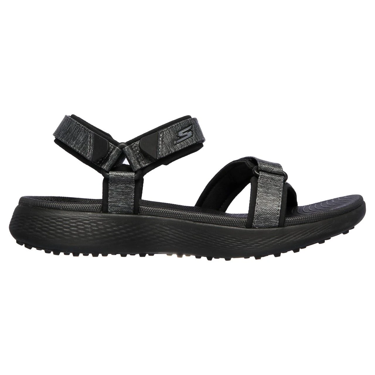 Get ready for a casual afternoon on the course with the Skechers GO GOLF 600 sandal. This sporty casual sandal features heathered jersey straps with a Goga Max cushioned footbed and a golf-style spikeless TPU outsole for added stability.
