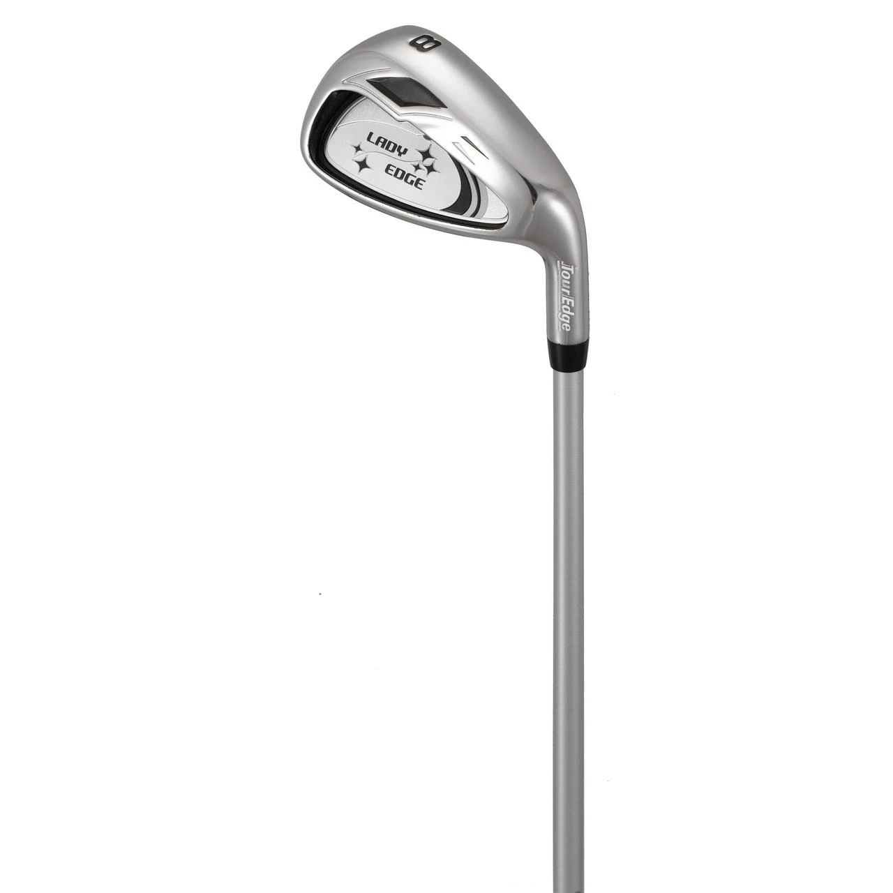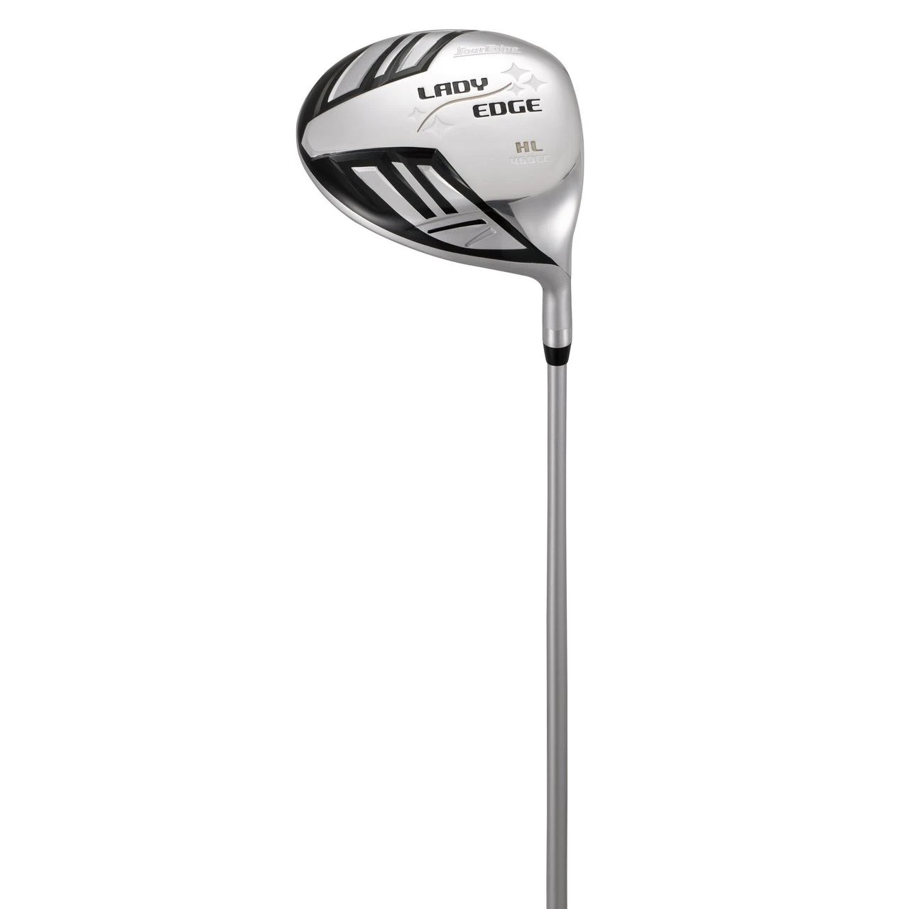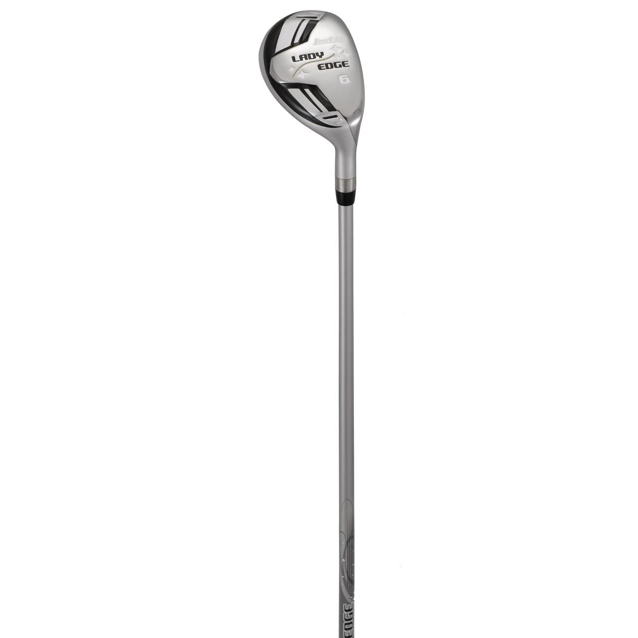 The Lady Edge high-lofted 460cc driver is designed for superior distance and accuracy. The low-profile stainless steel fairway woods provide a super low center of gravity for higher flying wood shots, and the easy-to-hit stainless steel hybrids deliver maximum forgiveness on the long iron shots.